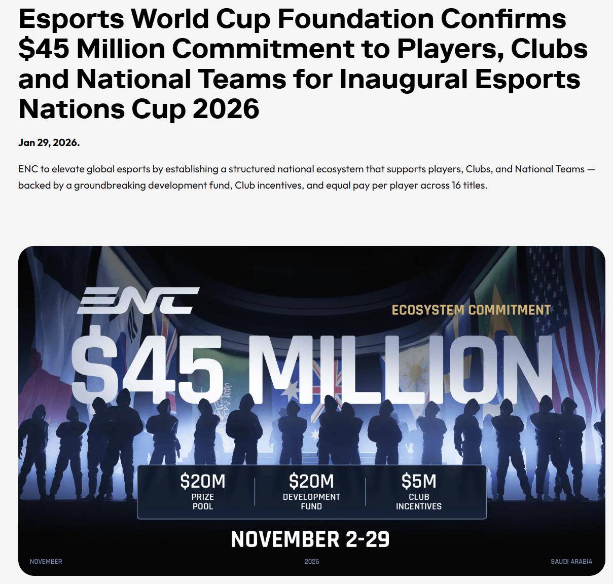 其中,2000万美元(现汇率约合1.39亿元人民币)为16个比赛项目的选手与教练直接奖金;电竞世界杯基金会还将设立500万美元(现汇率约合3476.2万元人民币)俱乐部激励金,奖励同意旗下职业选手参赛的电竞俱…