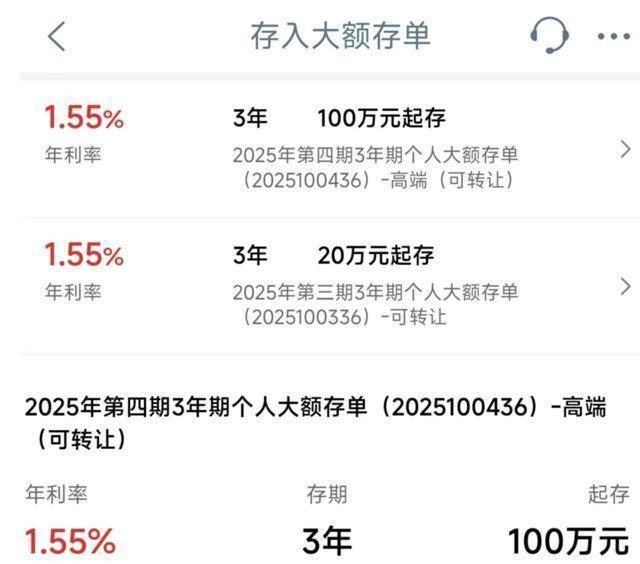 奇怪吗,不奇怪,因为另一个事实摆在眼前,之前那个三年期二十万起存的产品,也是1.55%,三年期普通定期,起存仅50元,利率顶多也到1.55%,换句话说,存100万、存20万、存50元,表面上并无利差,差别只剩门槛和身份认同感。