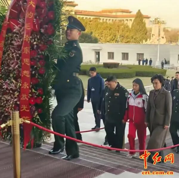 毛主席嫡孙毛新宇少将和夫人刘滨,携女儿毛甜懿,以及战友们来到毛主席纪念堂,向伟大领袖毛主席坐像三鞠躬。(中红网红色图库)