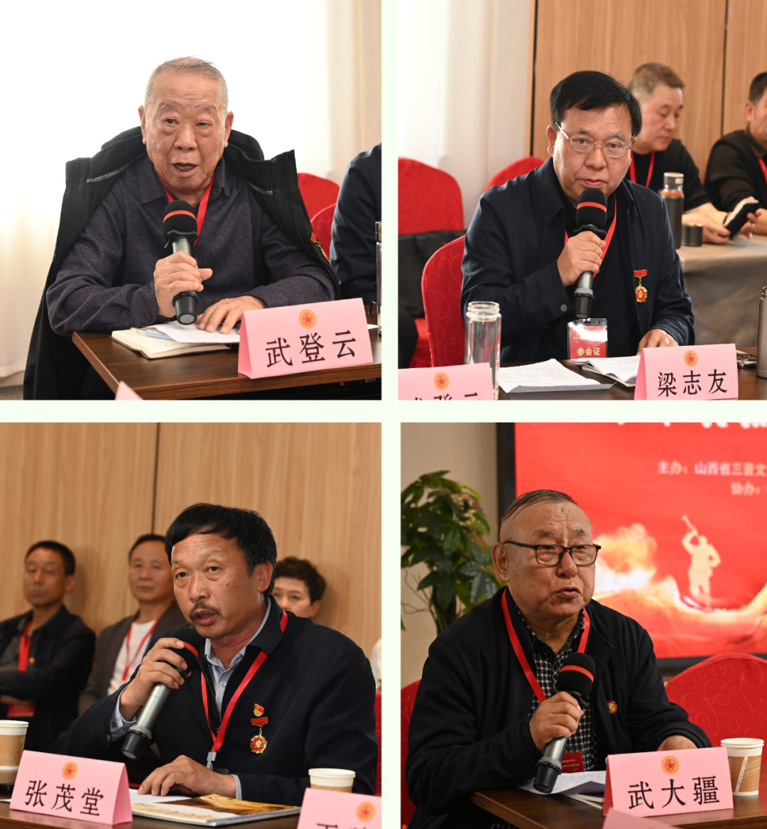 汾阳市三晋文化研究会会长武登云、灵石县文史研究会主任梁志友、交城县东社村党支部书记兼红军东征纪念馆馆长张茂堂、三晋文化研究会红色伟业文化研究专委会主任武大疆分别结合自身研究与工作实际,先后围绕红军东征在各地战斗历程、历史贡献以及军民鱼水情深故事等议题进行交流发言。